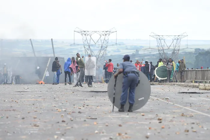 Hundreds of community members of Vosman township took to the streets blocking the N4 with burning tyres and debris, protesting against the lack of service delivery in the area. Residents are complaining that they have not had electricity and water for the past weeks. Picture: Itumeleng English/African News Agency (ANA)