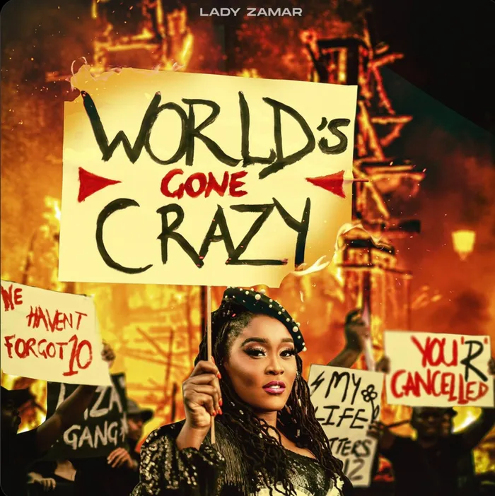 Music talent Lady Zamar shared a picture on her social media platform conveying different themes on placards displayed in the picture. Picture: Twitter