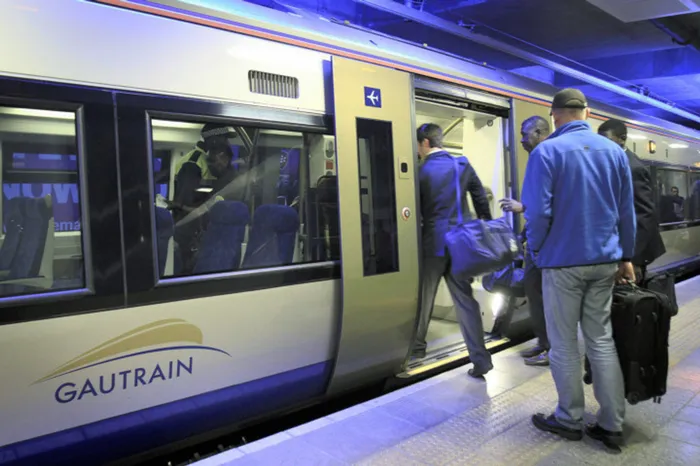 Passengers board a train at Gautrain’s Sandton mass transit rail station in Joburg. Photographer: Nadine Hutton/Bloomberg