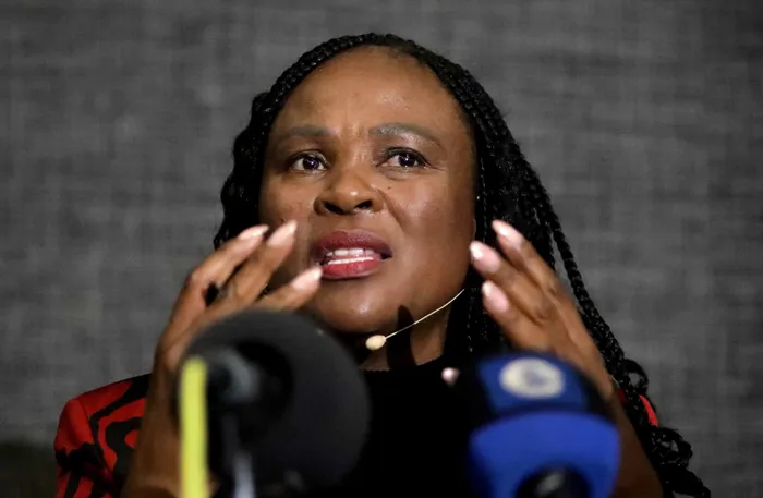 South Africa Johannesburg Busisiwe Mkwebane 13 June 2023. Suspended public protector Adv Busisiwe Mkwebane gives evidence of a meeting between her husband and the late Tina Joemat Pettersson. Audio recordings and whatsapp messages were given to the media gathered at a briefing that took place in Sandton on Tuesday. Picture: Timothy Bernard African News Agency (ANA)