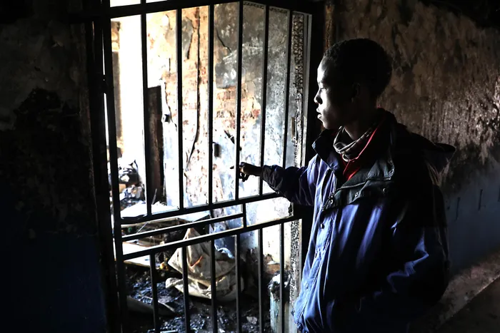 South Africa Johannesburg- Hillbrow fire 2 Kids 22 June 2023. Two kids (aged 7 and 5 years old) died in a fire that gutted their apartment on Wednesday afternoon. A fire started allegedly due to faulty illegal electricity connections. The children were locked up in their apartment on the second floor of the Florence Nightingale building in Hillbrow. The dilapidated building has no working fire hydrants or running taps. Bystanders tried to break open the burglar but failed in the midst of the growing fire. Kgomotso Boyi who was first on the scene says the two kids died screaming inside their home. Picture: Timothy Bernard / African News Agency (ANA)