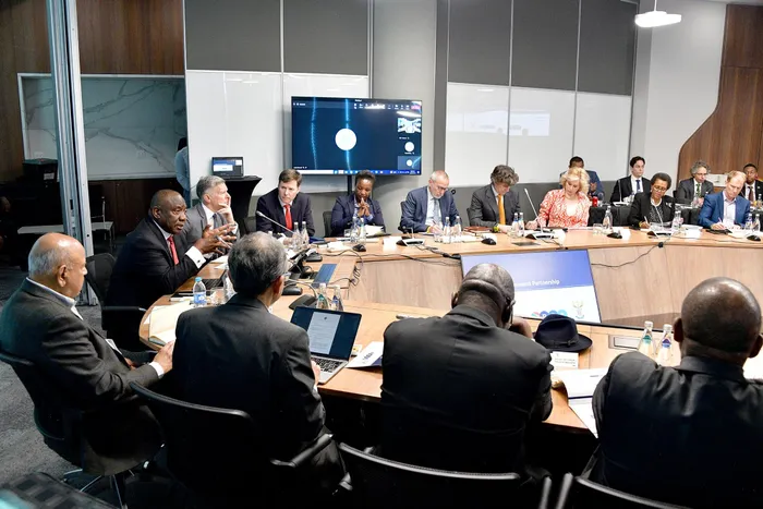President Cyril Ramaphosa chairs a follow-up meeting between Government and business leaders in Sandton on Tuesday. Picture: Supplied