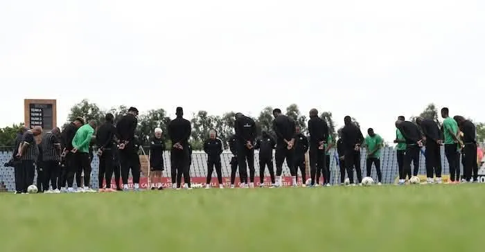 Bafana Bafana, at one of their training sessions, pray for divine intervention.