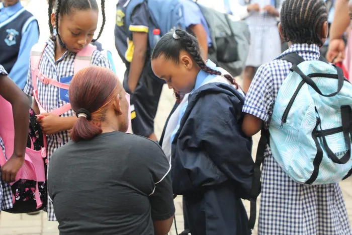 Some parents accompanied their children to school on first day of school at Firethorn Primary School, located in the heart of Klipspruit, Soweto.