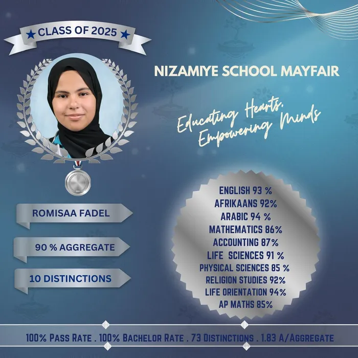Another high achiever, Romisaa Fadel of Nizamiye Mayfair, attained 10 distinctions. She described the outcome as “surreal,” noting that the demands of matric were made manageable through a strong support system.