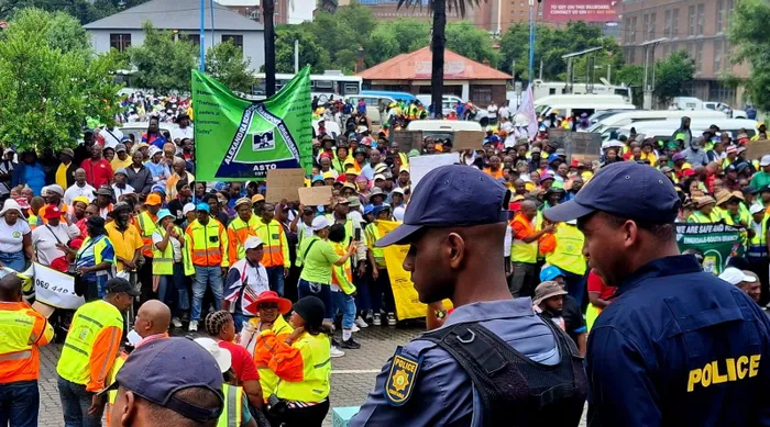 Hundreds of scholar transport operators gather at the Library Gardens to march to Mary Fitzgerald Square, where they expect to hand over a memorandum to Gauteng Roads and Transport MEC Kedibone Diale-Tlabela.