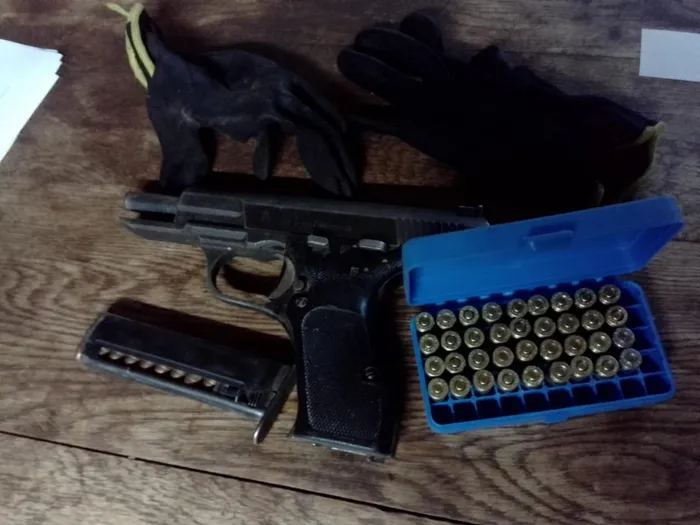 A 9mm pistol with an obliterated serial number and 36 rounds of ammunition seized during the arrest of one of the suspects. Picture: supplied/SAPS