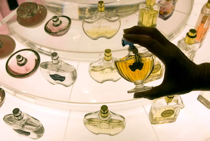 An employee holds a Guerlain's perfume bottle at the KaDeWe department store in Berlin in this April 15, 2008 file photo. REUTERS/Fabrizio Bensch/Files (GERMANY - Tags: SOCIETY BUSINESS)