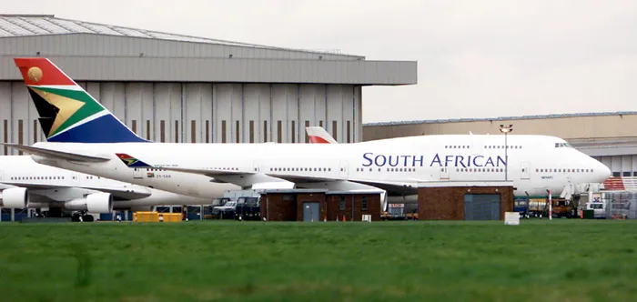 A South African Airways 747 aircraft stands on the tarmac at Heathrow Airport’s Terminal Four, London. Picture: Ian Waldie/Reuters/ANA Archives