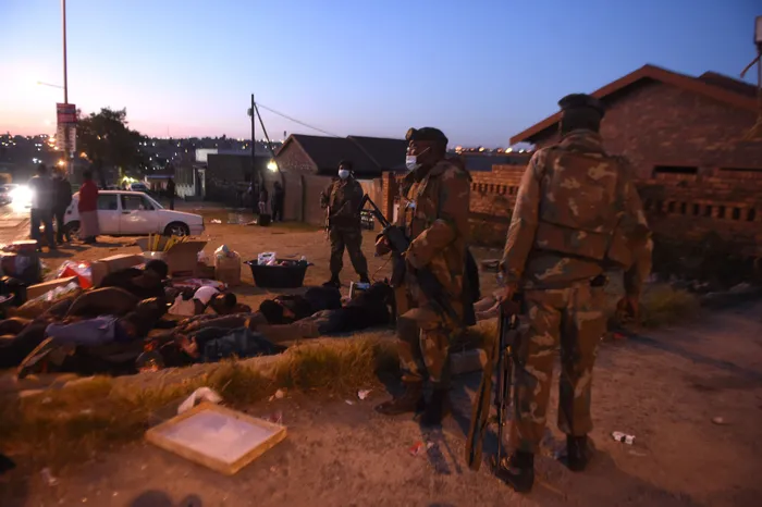 South Africa - Johannesburg - 12 July 2021 - Members of the army arrested looters at Black chain shopping centre in Soweto. Picture: Itumeleng English/African News Agency (ANA)