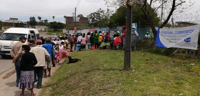 Voters queuing outside IEC venue at Nompumelelo township East London to cast their ballots. Picture: Bheki Radebe