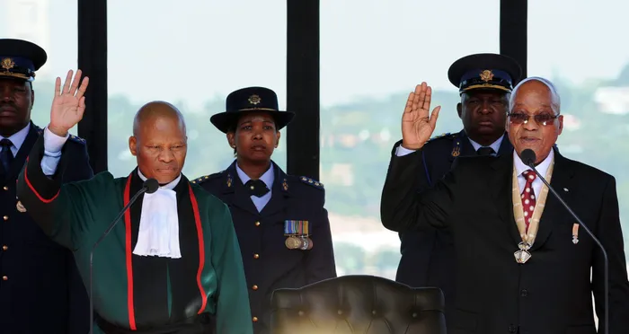 FORMER president Jacob Zuma takes the oath of office administered by former chief justice Mogoeng Mogoeng in the Nelson Mandela Amphitheatre at the Union Buildings, Pretoria. Elmond Jiyane, GCIS Photo Studio