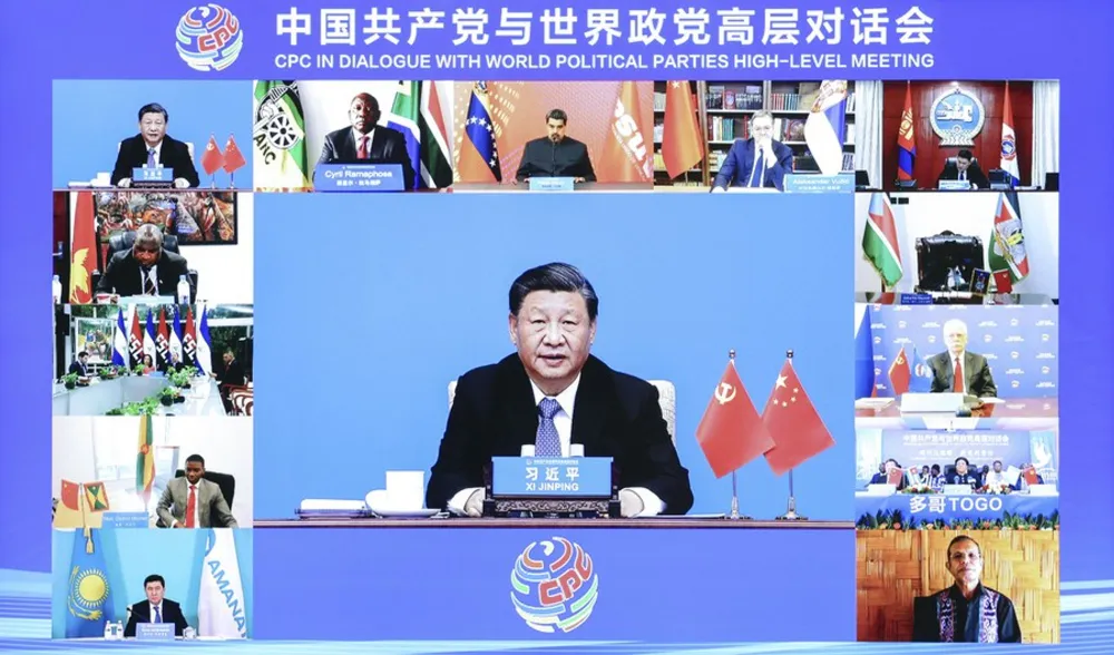 President Cyril Ramaphosa has addressed the international high-level meeting between the Communist Party of China and hundreds of political parties from various parts of the world, via video link. Ramaphosa was flanked by secretary-general of the ANC Fikile Mbalula and deputy secretary-general Nomvula Mokonyane. Photo: @MbalulaFikile/Twitter