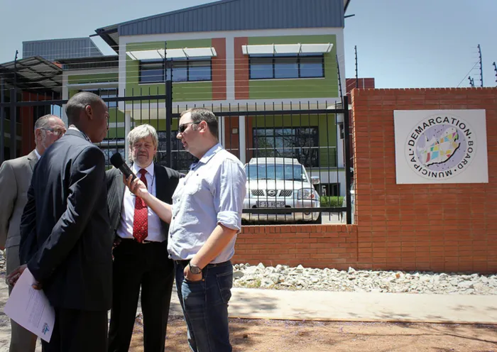 Officials talk to the media outside the offices of Municipal Demarcation Board in Arcardia. File picture: Motshwari Mofokeng/African News Agency (ANA) Archives
