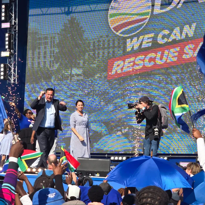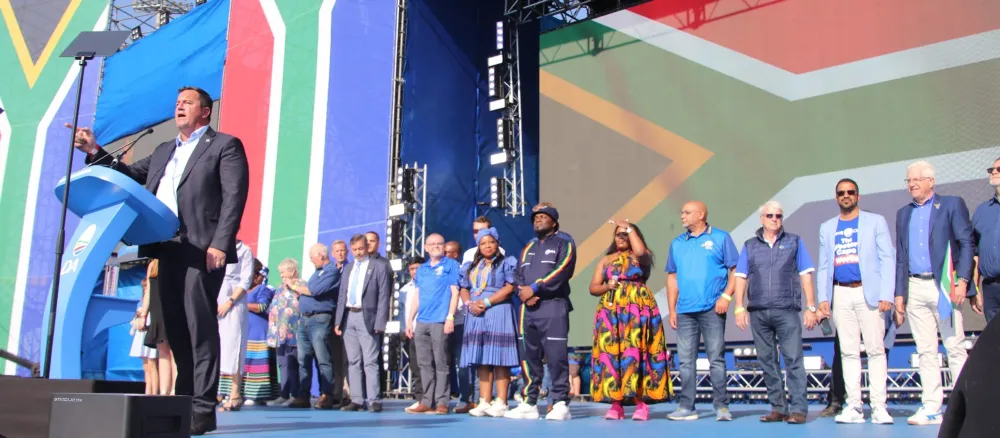 Democratic Alliance leader John Steenhuisen addressed a sea of blue on Sunday in Benoni during the party’s final rally ahead of the general elections set for Wednesday, where he appealed to South Africans across the board to give his party a chance.