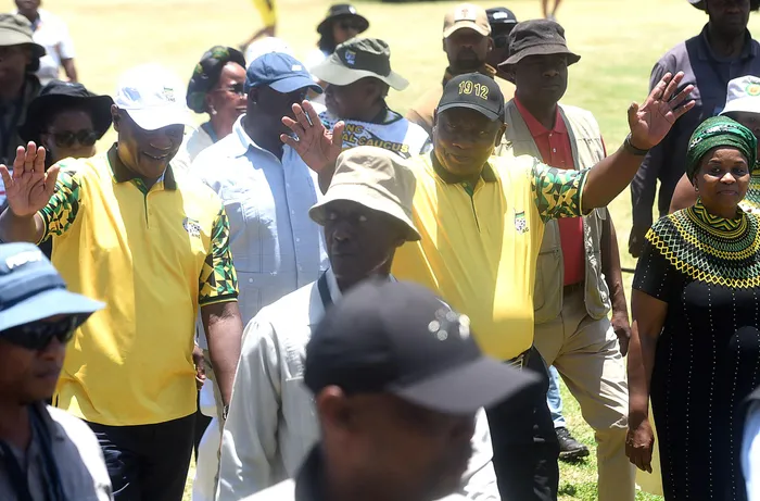 ANC President Cyril Ramaphosa, his deputy, Paul Mashatile and other ANC leaders greeting ANC supporters gathered at the Moruleng Township during the party's 114th celebrations on Saturday.