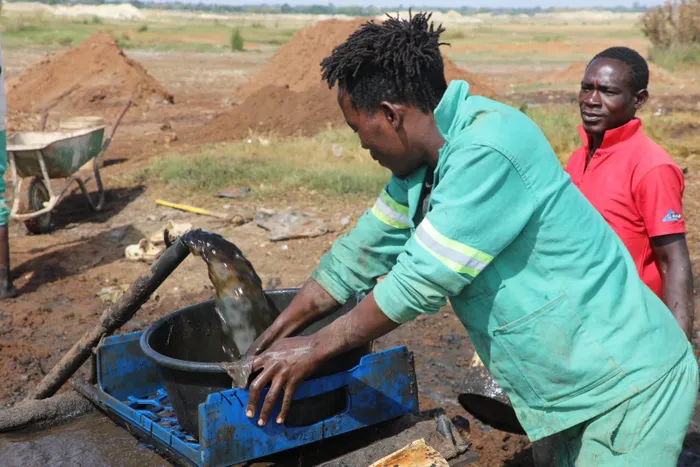 A woman from the Gugulethu informal settlement in Springs, Ekurhuleni, is processing alleged gold particles found in one of the cattle kraals in the area.