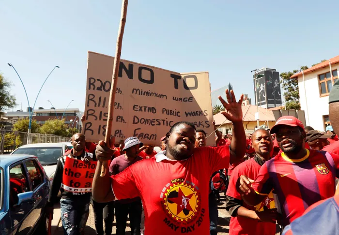 SATFU-affiliated unions including Numsa today marched to the premier’s office in the CBD to hand over the memorandum against the minimum wage the government is proposing. | Simphiwe Mbokazi African News Agency (ANA)