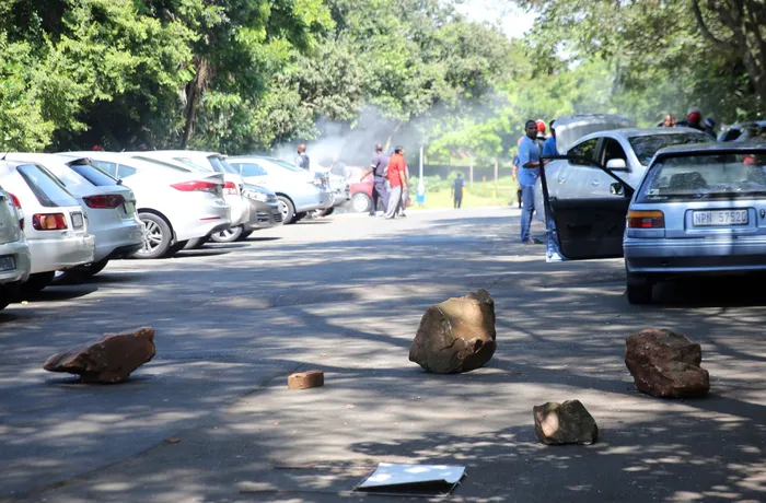 A file picture taken during a protest at the University of KwaZulu-Natal’s Westville campus earlier this year. Unrest broke out at the university on Monday when students protested about financial exclusion and other funding issues. Picture: Motshwari Mofokeng/African News Agency (ANA) Archives