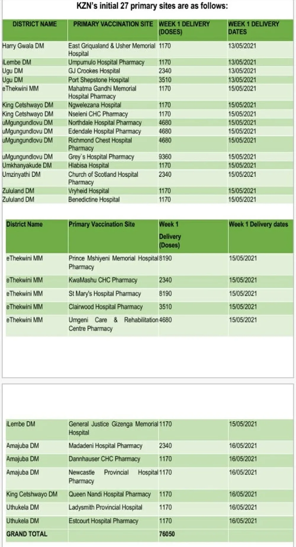 She said KwaZulu-Natal has a total of 689 prepared vaccination sites for the rollout of both the Pfizer and Johnson & Johnson vaccines made up of health facilities, community halls, Thusong Community Centres, and other public amenities.