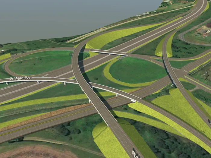 The N3 interchange has been designed to be upgraded in phases. This is the image of the of the ultimate Interchange layout as designed. These renderings are of the final layout, of which the two fly-over ramps will be constructed in future, as per traffic demand. Graphic: Supplied.
