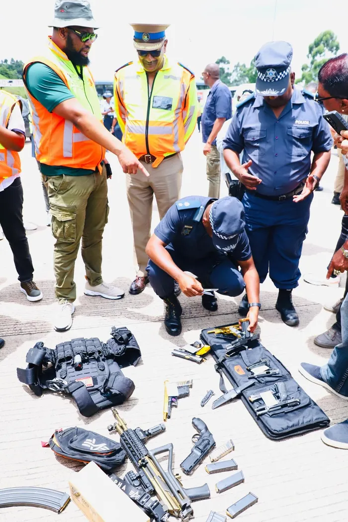 KZN Department of Transport MEC Siboniso Duma (left), Road Traffic Inspectorate officials, and Durban metro police officers conducted checks on the firearms.