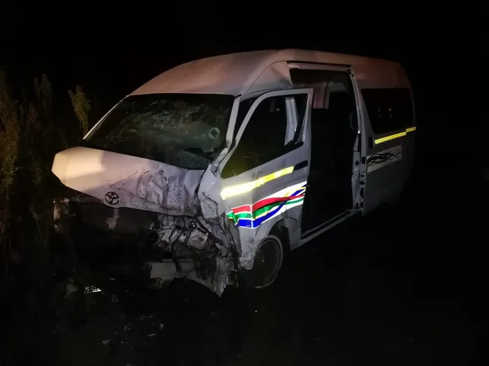 A minibus taxi involved in the head-on collision outside Kriel, Mpumalanga Three children were killed when a car and a minibus taxi collided head-on outside Kriel in Mpumalanga.