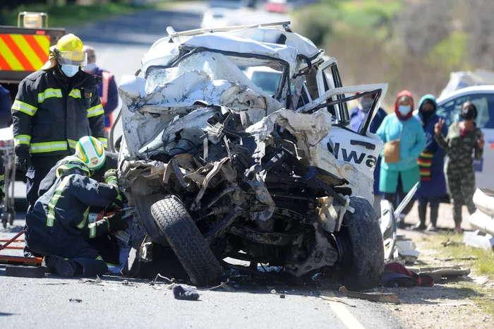 Western Cape emergency services at the scene of a crash that occurred on the R321 heading towards Theewaterskloof Dam, near Villiersdorp, on Tuesday. Picture: Ayanda Ndamane / African News Agency (ANA)