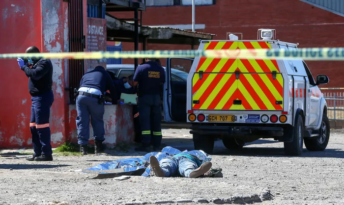 THREE men were shot dead at the Joe Slovo taxi rank in Milnerton on Wednesday. A fourth person was wounded. Police were deployed to the scene at around 9am on Wednesday morning. Detectives said that preliminary findings suggested that the killings were linked to ongoing conflict in the taxi industry. Picture: Leon Lestrade African News Agency (ANA)