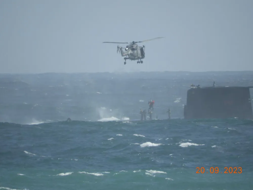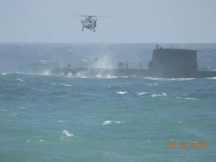 The SA Navy submarine SAS Manthatisi was en route to Cape Town and was conducting a vertical transfer using the SA Air Force Maritime Lynx helicopter. The SANDF said the VERTREP evolution was immediately cancelled and efforts were launched to recover the members.