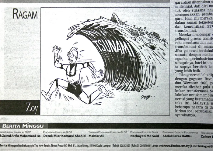 The Malay-language Berita Harian, one of Malaysia's main dailies, drew heavy criticism, especially on social networking websites, after it published the cartoon on Sunday on its comment page.
