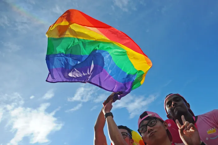 A Singaporean waves a rainbow flag during the Pink Dot event held in Singapore's Hong Lim Park. By Xinhua, Then Chih Wey