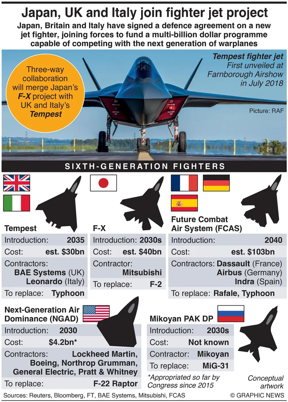 The three nations held out the prospect of co-operation with European and US allies, which are developing their own “sixth-generation” planes, vowing to maintain “interoperability” among all the allies against threats from the likes of China and Russia.