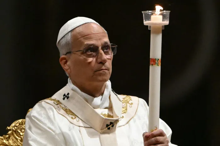 Pope Leo XIV presides over the Easter vigil as part of the Holy Week celebrations at St Peter's Basilica in the Vatican.