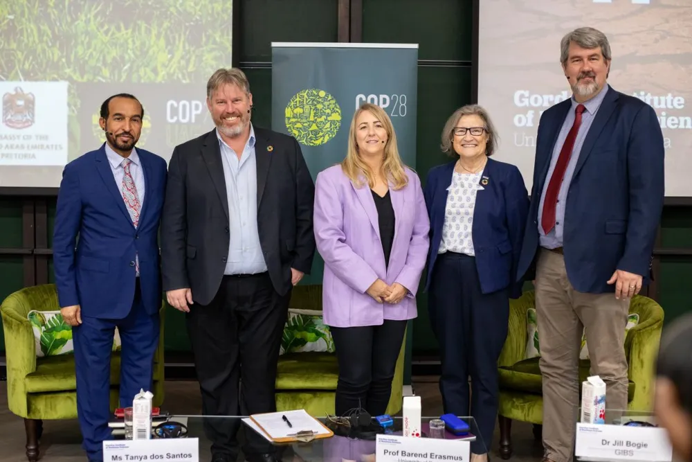 Professor Barend Erasmus, the dean of the Faculty of Natural and Agricultural Science at the University of Pretoria, chaired a panel consisting of Stephen Nicholls, the head of mitigation at the Presidential Climate Commission; Tanya dos Santos, a sustainability leader and ex-global head of sustainability at Investec; Dr Jill Bogie, director of Gibs Sustainability Initiative for Africa; Thureya Al Ali, the team lead on Global Stocktake at the Office of the COP28 President designate and Professor Guy Midgley, the acting director of the School for Climate Studies at Stellenbosch University.