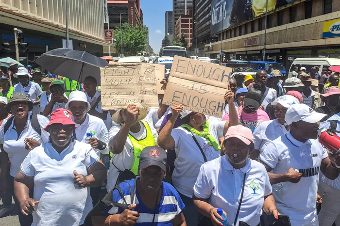 Residents under the banner of Lotus Gardens, Atteridgeville and Saulsville Civic Association march to Tshwane House, demanding improved service delivery. Picture: Jacques Naude Independent Newspapers