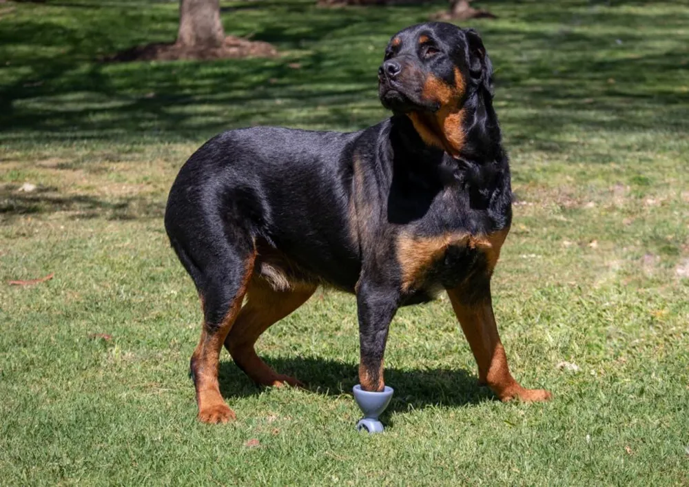 A young Rottweiler has been given a new lease on life following innovative, ground-breaking prosthetic surgery to make him fully mobile again.