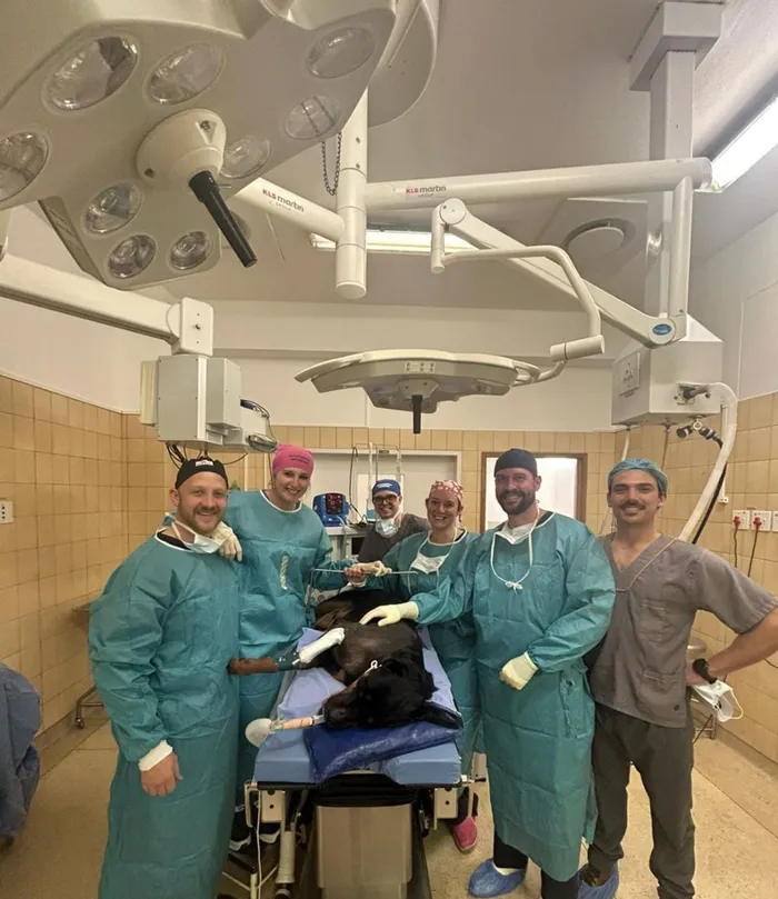 The UP team which performed SA’s first surgery of its kind to to three-year-old Rottweiler named Covid.