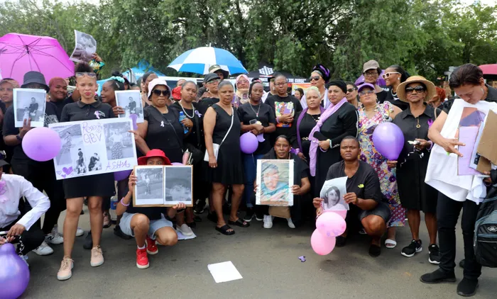 Eldorado Park residents gather outside the police station in a show of solidarity against gender-based violence, honouring victims with a 15-minute silent protest.