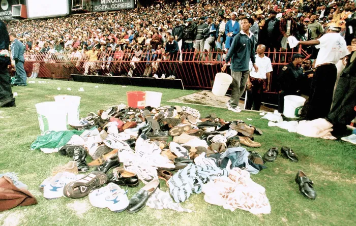POIGNANT REMINDER: The scene at Ellis Park Stadium in 2001 after a stampede killed 43 fans there. Picture: Kim Ludbrook POIGNANT REMINDER: The scene at Ellis Park Stadium in 2001 after a stampede killed 43 fans there. Picture: Kim Ludbrook