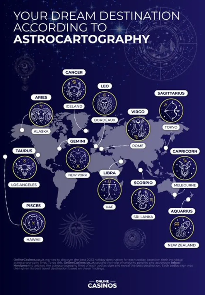 In a bid to discover the ideal holiday destination for each zodiac sign based on their astro-cartography lines, the online space which is one of the UK’s most respected casino reviews sites, has worked with celebrity psychic and astrologer Inbaal Honigman.