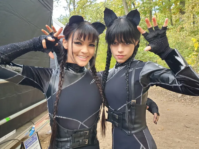 South African stunt woman Jenny Umbhau with US actress Jenna Ortega. Supplied image.