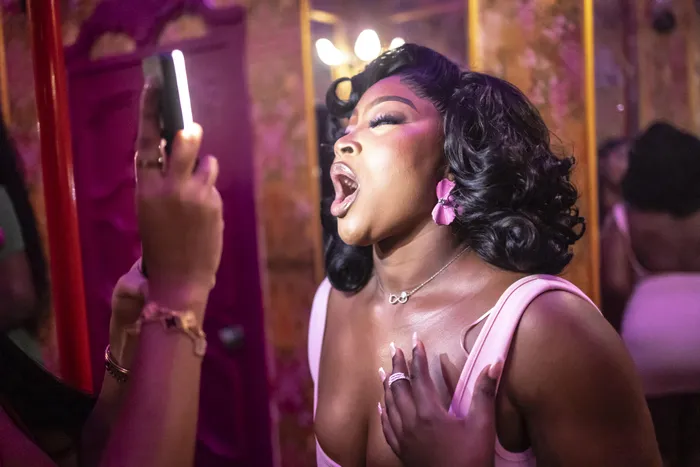 Inside, women adjusted the necklines of their brightly coloured dresses, swayed their hips and batted their fake eyelashes, phones in hand.