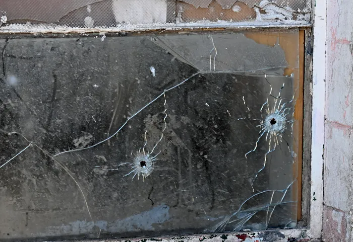 Bullet-riddled window in Mitchells Plain after deadly gang-related shooting leaves three dead.
