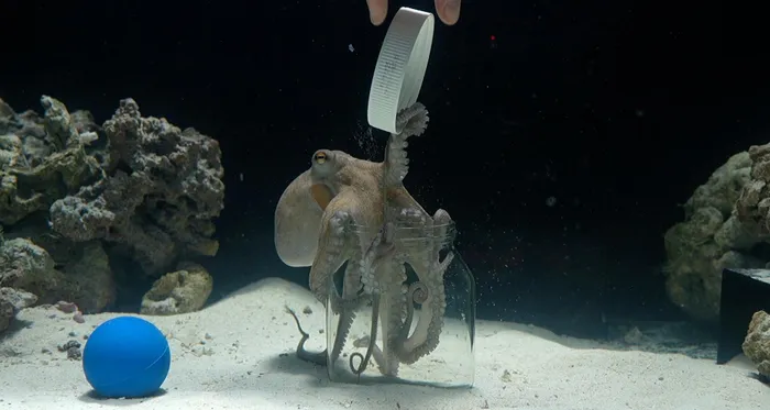 Plus - as expected from an octopus - Tako wasn’t focused on learning the instrument. Tako wrapped its arms around the GoPro camera in its tank, squirted water at Krantz, and, once, escaped the tank and hid in a cupboard.