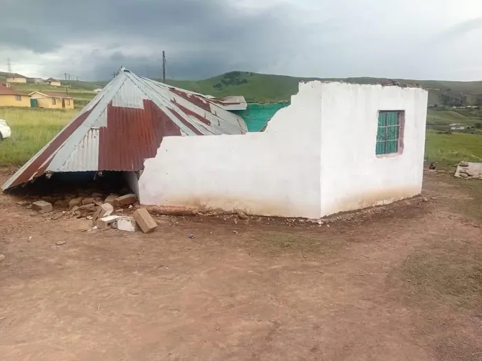 Homes in Impendle left in ruins after severe storms, displacing families and prompting immediate disaster response efforts.