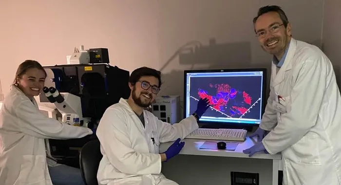 Scientists use advanced imaging techniques to investigate how Rooibos may support healthy brain cells. From left are Catherine Smit, Dr Sholto de Wet and Prof Ben Loos.