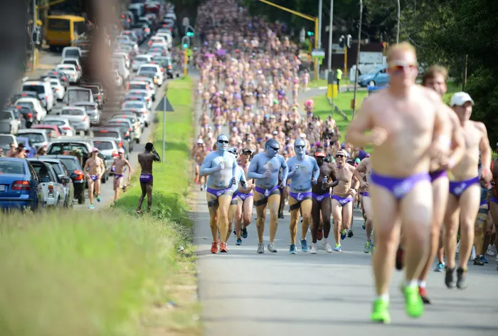Men in their speedos take part in the 2016 Hollard Daredevil Run yesterday around Zoo Lake. Picture:Paballo Thekiso
