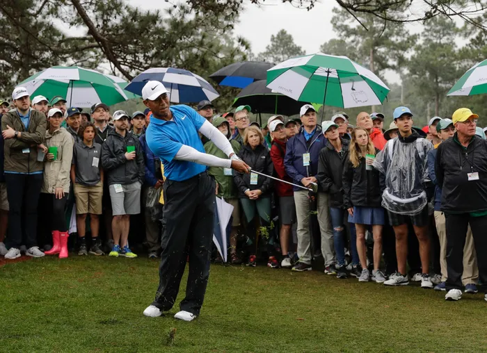 Tiger Woods hits on the third hole during the third round at the Masters on Saturday. Photo: David J. Phillip/AP Tiger Woods hits on the third hole during the third round at the Masters on Saturday. Photo: David J. Phillip/AP