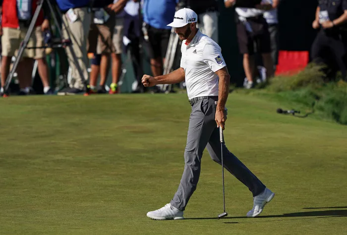 Dustin Johnson sunk a 45-foot putt at the par-three seventh that took its time getting to the hole, then teetered in to a massive roar from the crowd. Photo: Carolyn Kaster/AP Dustin Johnson sunk a 45-foot putt at the par-three seventh that took its time getting to the hole, then teetered in to a massive roar from the crowd. Photo: Carolyn Kaster/AP